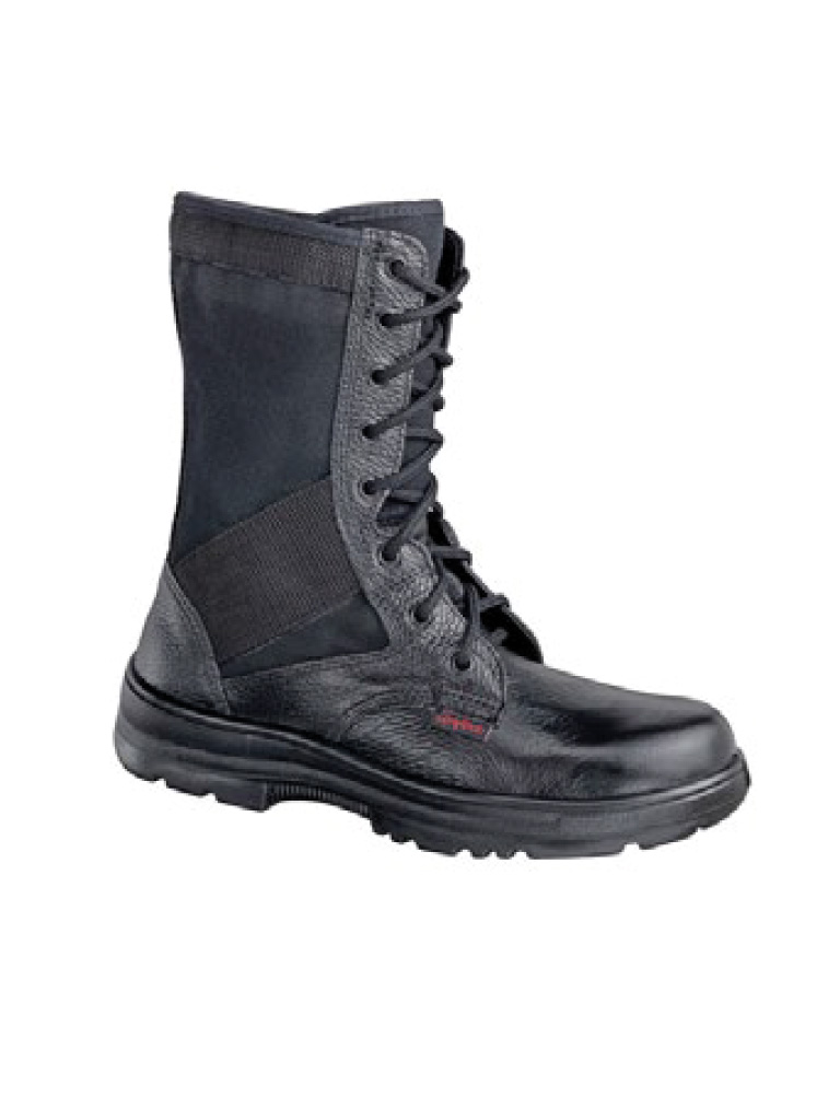 Mixed security combat boots, lace up model, produced in vachetta integral leather, relax stamp, with canvas sides, padded collar, semi-bellows tongue type, shaft with 21 cm tall. It has removable inner EVA insoles with antimicrobial treatment. It is indicated for services in areas that present low risks or inuence of electric energy, in addition to uniformity in military services, safeguarding, guard, etc. Ensuring comfort and protection to the user’s feet, legs and ankles