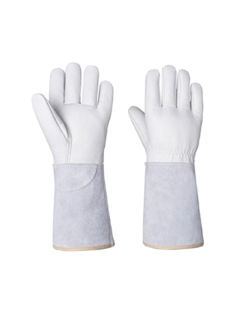 Protective welder model glove, and the hand in vachetta integral, 8/10 thickness and wrist in groupon split leather. It has elastic adjustment on the back. The wrist nishing is in hemming, with optional wrist sizes: 15 or 20 cm. It is indicated for hands protection in general services than present mechanical risks and where there is contact with abrasive materials and/or caustic agents, against thermal agents (small ames, contact heat, convective, radiant and splash of molten metals) and against thermal agents from welding operations and similar processes.